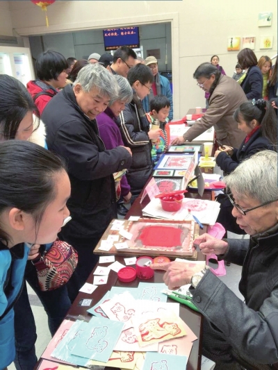感受春节的文化氛围,是杨浦人过春节的重要节目。大年初一,区图书馆内3位杨浦民俗达人展示春联、剪纸、拓印年画等传统年俗技艺。春联、剪纸以及拓印羊画承载满满新春祝福赠送给市民读者。