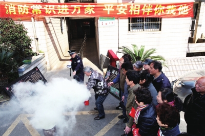 3月25日,四平路街道防火委、鞍山一村第三居委会、凤凰业委会、冬迩物业,在本溪路189弄小区联合开展消防逃生演练,30余名消防志愿者参加了活动。■种楠 朱良城 摄