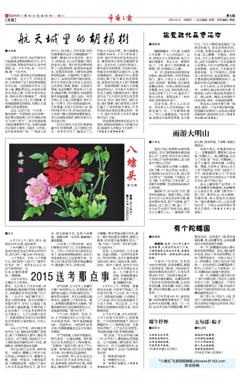 我抚摸着胡杨树的层层岁月皱纹,细细品味着航天人的豪言壮语,脑海里又浮现出飞天神舟……