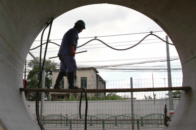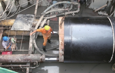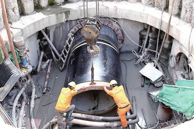 8月12日,台风“苏迪罗”对上海还略有些外围影响,记者先后来到位于长阳路隆昌路、杨树浦路隆昌路和杨树浦路内江路的3个管网建设工地现场,工人们正在紧张施工,由于顶管施工的工艺要求,工地上的两个工作井需要24小时不间断推进。因为要考虑交通出行、地下管线复杂等原因,工程推进难度颇大。在位于杨树浦路隆昌路的工作井工地,竖立着硕大的起重机,据施工方中铁上海工程局相关负责人介绍,工地上的管子外直径可达4.14米,因为要照顾到周边交通,通过改制作业设备将施工作业面尽量压到最小。建筑工人们战高温、防台风,日夜奋战在工程一线,争取早日完工服务周边居民。