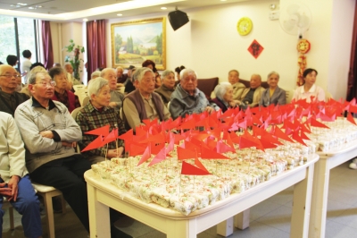 “一年一度的重阳节是老人的节日,希望子女不要忘记这一天,尽量抽空来陪陪老人。”街道总工会相关负责人说,糕点不算贵重,送上的是一份心意,营造敬老爱老的良好风尚。老年公寓自2012年运转以来,一心斋每年农历过年和重阳节都会带着企业制作的糕点和员工排演的节目到老年公寓,颇受老人们的欢迎。