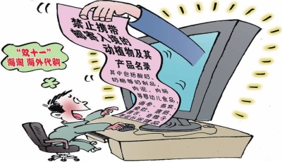 “双十一”前夕,海淘、海外代购等跨境网购逐渐升温。天津检验检疫人员提醒,与跨境邮寄物增多相伴随的是各种带有检疫风险违禁物品的增加。据统计,今年1到10月,经天津出入境检验检疫局邮检办事处截获的禁止进境物共计3903批次,5760公斤。其中包括酸奶、奶酪等奶制品,肉泥、肉肠等婴幼儿食品,海参、燕窝、鱼肚、鹿筋、鹿舌、奇雅子等滋补保健品,以及带有栽培介质的多肉植物、植物种子等。这些物品都是禁止携带、邮寄入境的,该办事处已依法根据物品性质及实际情况,分别做了销毁或退运处理。 ■新华社蒋跃新