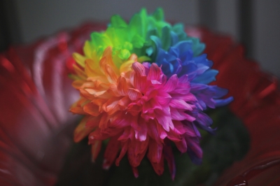 其中,名为“幸福彩云菊”的菊花吸引了不少游客的目光。这是近年来新培育的新奇品种,单朵菊花可以同时呈现出“赤、橙、黄、绿、青、蓝、紫”七种颜色。园方介绍,它采用生物炫彩素,通过控制温度、水分、光照、PH等因素,使根部对色素进行吸收,将多种色彩均匀地呈现在花瓣上,而非普通花朵染色。将它养于清水中,比一般鲜花保鲜期要长2至3周。七彩菊艳丽的颜色,寓意着人生的绚烂和生命的蓬勃,因此有人称之为“幸福菊”。