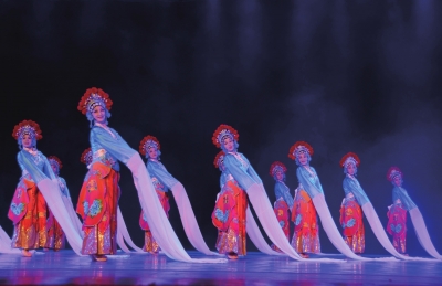 11月15日,“到人民中去——‘舞者展风采’送欢乐、下基层文艺惠民演出蓬江行暨第二届广东省中老年舞蹈大赛颁奖晚会”在江门市东湖影剧院举行。“广东省中老年舞蹈大赛”目的在于丰富中老年人的文化生活,增进其艺术的普及与交流,展示这一群体独有的风采与魅力。本届大赛共有32个参赛作品,作品形式多样、主题鲜明、创意独特,具较高的艺术观赏性和思想性。本次大赛中,年龄最大的参赛选手已有68岁高龄,而最终有近600名中老年舞蹈演员登上了总决赛的舞台。图为东莞市虎门镇文广中心虎妞舞蹈团表演的群舞《袖舞行云》荣获此次赛事学习剧目组表演金奖。 ■许建梅 摄