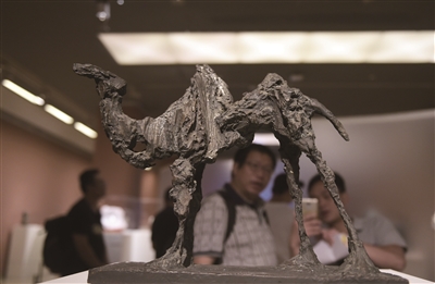 9月6日,“首届全国雕塑艺术大展”在北京中国美术馆开幕。展览以20世纪以来的中国雕塑艺术为切入点,对中国美术馆馆藏及当代创作雕塑作品进行梳理研究,共展出中国百年以来几代雕塑艺术家的精品力作590件,全面呈现中国百年雕塑的发展脉络与重要成就。图为观众在中国美术馆参观展出的雕塑作品《骆驼》。