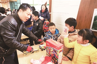 上海音乐学院实验学校、复旦科技园小学等学校的学生家长,带着孩子参加爱心义卖。玩具、故事书、文具等日常用品应有尽有。上音实验学校的小朋友,积极兜售、卖力吆喝。学生家长则表示:“小朋友在奉献爱心的同时,还培养了和陌生人沟通的能力,活动非常好。”