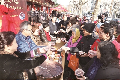 1月24日上午,杨浦区离退休干部党工委、殷行街道党工委联手上海荣庆堂实业发展有限公司,举行第八届腊八文化节暨公益爱心赠粥活动。活动现场还提供中医咨询、测量血压、膏方熬制、针灸推拿等服务。 ■记者 朱良城 摄