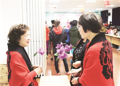3月6日,定海路街道第一睦邻中心举办“靓丽女性 巾帼传承”三八妇女节主题活动,以“魅力旗袍秀”“形体舞”为主的社区文艺团队表演、以“健康咨询”“心理咨询”为主的社区女性健康服务,“巧手妈妈缝纫DIY”、“插花沙龙”等形式多样、妇女喜闻乐见的活动,营造了欢快的节日氛围。■记者 王修远 摄