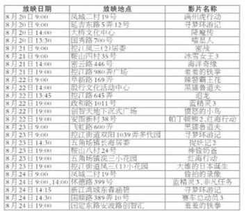 杨浦区公益电影流动放映排片表(8月)
