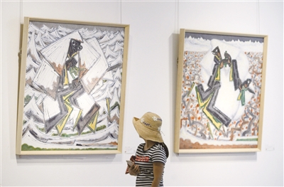 9月25日,2018杭州国际当代陶艺双年展开幕。当日,“泥土之相——2018杭州国际当代陶艺双年展暨第十一届中国当代青年陶艺家作品双年展”在位于杭州的中国美术学院美术馆开幕。展览展出来自国内外的38名艺术家的400余件作品。图为观众在欣赏陶瓷画作品。■新华社 施健学 摄