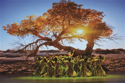 12月18日,2018年甘肃省舞蹈大赛闭幕式暨颁奖晚会在兰州音乐厅举行。本次舞蹈大赛最终共有46部作品、390人荣获奖项。图为西北民族大学演员正在表演舞蹈《胡杨赞》。■新华社 范培珅 摄