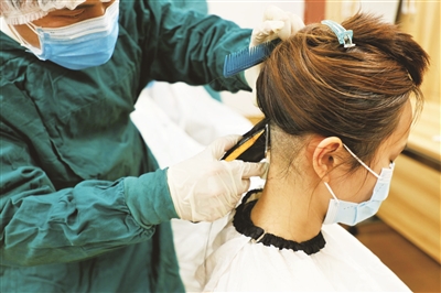出发前,区卫健委为医院进行了物资配备。护理部还为大家准备了一些生活必需品,包括专用医用敷贴保护面部皮肤,避免长时间佩戴口罩、防护镜导致皮肤破损。此外,医院还请来理发团队为有需要的队员服务,女队员们都不约而同地选择了干净利落的短发。
