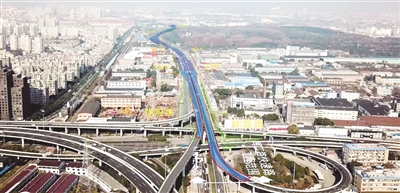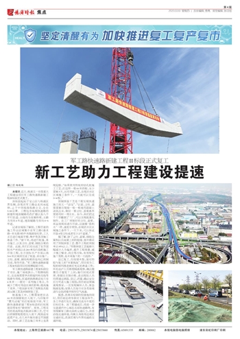 据了解,除了立柱、盖梁,钢组合梁和以后高架上的防撞墙、窨井都采用了预制拼装工艺,整个工程的预制率达95%以上。“预制拼装工艺能够大幅减少人为偏差,提升工程质量,减少施工噪音、扬尘等污染,有效缩短施工周期,是未来施工的一大趋势。”