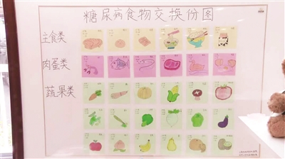 而“糖尿病食物交换图”则是依据医院的糖尿病宣教工具改造而成。在雷神山医院,有不少患者同时患有糖尿病,为了做好这部分患者的护理工作,护士们经常在便签纸上绘制各种常见食物,并标注食物所含的热量,通过寓教于乐的方式,指导患者合理饮食。