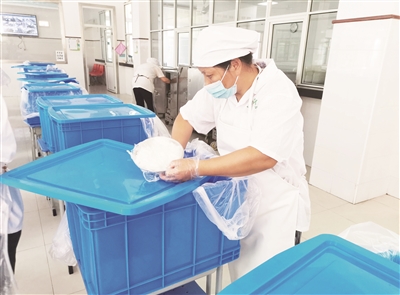 疫情期间,学校利用食堂、教室、体育馆扩大用餐场地,错开时段分批就餐。有代表提出,如何在保证师生用餐安全的前提下保证食物的美味可口?食堂负责人张渊美介绍,“烧好的饭菜我们都放在保温箱里,针对不同批次的用餐学生,厨师会在后面分批炒菜,确保从餐品制作完成到师生用餐不超过两个小时,让大家吃得新鲜、吃得放心。”