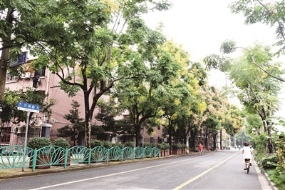 栾树为无患子科、栾树属植物,落叶乔木,树形端正,春季嫩叶多为红叶,夏季花开满树金黄,秋冬蒴果如灯笼而不落,一年四季皆可观赏,因其适应性强,季相明显,色彩斑斓,在上海城市绿地和道路绿化应用中较为广泛。现在,区域内除了各大公园和大型绿地,兰州路、民星路、闸殷路等路段都将栾树作为行道树。