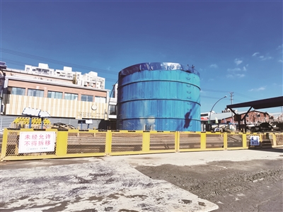 由于地墙深度达到70米,地墙成槽后需要置换的泥浆量也非常大,且换浆效果将直接影响开挖时地墙的抗渗效果。据统计,工作井一幅地墙需要的新鲜泥浆方量为400-500方,常规的泥浆存储方式将需要较多的场地。于是,项目部在施工现场制作了一个高7米、直径10米的超大泥浆筒仓,存储方量达到550方,可以满足工作井任一单幅地墙的泥浆置换需求。