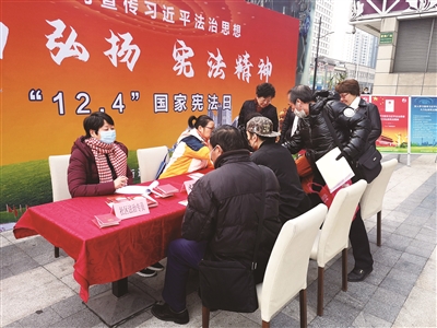 本报讯 今年12月4日是第七个“国家宪法日”。当天,四平路街道在紫荆广场举行了内容丰富的宣传活动,将宪法宣传送进商圈。