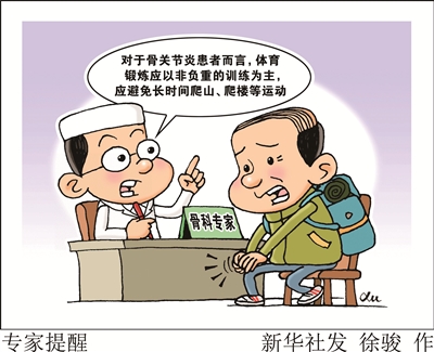 骨科专家指出,近年来,关节炎发病率上升,一些病人希望通过运动改善疾病,却陷入了越运动越受伤的误区,导致疾病加重。日常锻炼可以改善人的心肺功能,但同时也在加速关节的磨损和老化。有些骨关节炎患者特别是老年患者认为是自己长期缺钙导致骨关节炎的发生,希望通过补钙来进行治疗。骨质疏松是由于钙质长期流失造成的,而骨关节病的本质是关节发生退变和关节软骨过度磨损,补钙只能防治骨质疏松,而并不能治疗骨性关节炎。专家建议,关节炎患者应遵照医嘱合理运动,规律服用疗效确定的消炎止痛类药物,配合使用改善软骨功能的药物,辅以理疗等综合治疗方式才能缓解疼痛。■新华社 朱慧卿