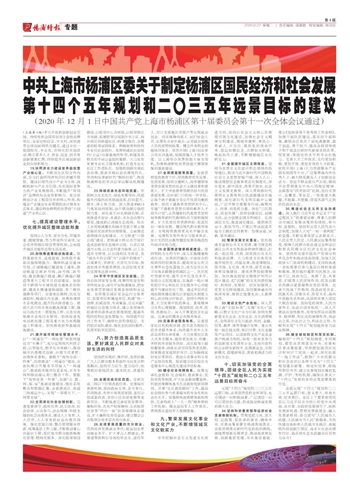 中共上海市杨浦区委关于制定杨浦区国民经济和社会发展第十四个五年规划和二〇三五年远景目标的建议