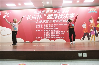 本报讯 近日,上海市第三届市民运动会杨浦区第三届运动会“长白杯”健身操决赛举行,全区29位选手齐聚一堂,伴随着动感十足的乐曲,轮番登场展示。本项赛事由上海市第三届市民运动会组委会、区体育局、区体育总会、区体育活动中心共同指导举办。