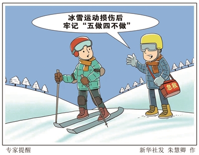 “冬奥风”带来“冰雪热”。专家提醒,预防冰雪运动中的运动损伤,参与者需从身体、装备、心理三方面进行“武装”,一旦发生了运动损伤,可牢记“五做四不做”。 要做到保护——不要立刻去诊断,如膝关节有疼痛感,在做任何检查之前先将膝关节保护起来;休息——不再进行任何激烈活动;冰敷——消肿止痛;压迫——用弹力绷带加压包扎;抬高——抬高受伤部位,促进血液回流,减轻肿胀。不能做热疗——热疗会加剧出血及组织液渗出的程度;不用酒精——酒精会加速血液循环,导致肿胀恶化;不能负重——上肢、膝关节等受伤后不能负重;不过早按摩——在24小时至48小时内按摩可能会加重炎症。