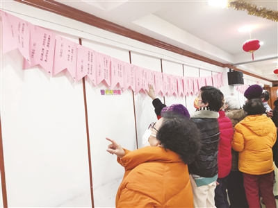 2月10日,定海路街道第三睦邻中心举办“猜灯谜、庆元宵”活动,给社区居民带来了一场“浓情蜜意”的文化盛宴,活动共有20余位居民参与。 一条条谜语悬挂在墙,内容广泛,有打动物、植物的,也有打日用品的,还有的涵盖了成语典故,知识性、趣味性兼备,激发了大家的兴趣。