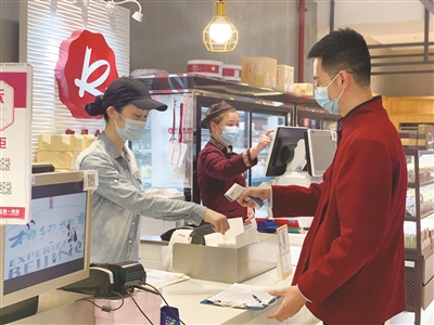 3月15日,记者来到五角场商圈第一食品商店开展实地走访。除了对顾客有防疫要求外,店内工作人员同样受到严格管理。每天早晨,商店会定时对每位工作人员开展体温监测,并登记在册。