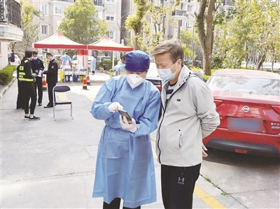 3月的一天,清晨6点,军休中心副主任赵文权站在了工作点位上,帮助居民操作健康云进行登记,并维持现场秩序。“我既是楼组长,又是党员。上周,我看到居委会在招募志愿者,就立即报名了。我还发动我爱人和楼里其他居民一起加入。在自家门口服务街坊邻居,意义非凡。”她说。