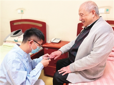 王爷爷是高龄老人,长期卧床,不能做动作、不能说话,几乎无法和护理员进行沟通。年轻的王程以为只要坚持做好日常照护工作就可以,所以与老人并无太多情感交流。然而有一天,王爷爷的一个举动出乎王程的意料。“那时,我已经服务他好几个月了。有一次我轮休,就麻烦其他护理员去给他喂饭,过了一会儿,对方竟然打电话给我,说爷爷很倔,不肯吃。我马上就赶了过去。看到我,他才愿意吃饭,还对我笑了笑。无数日夜的付出,终于换来老人一笑,爷爷的信任与依赖让我感动。就是因为他那一笑,我坚定了留在这个行业的决心。”王程告诉记者。
