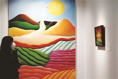 11月5日至10日,第五届中国国际进口博览会在国家会展中心(上海)举行。本届进博会消费品展区专设文物艺术品板块。图为参观者在第五届进博会消费品展区欣赏艺术作品。