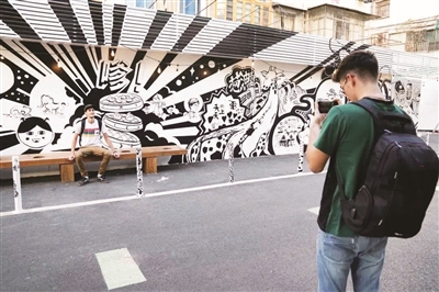 近几年,走在苏家屯路上,若细细留心,就会发现路边很多令人惊喜的小创意。墙面上绘制了生动逼真的涂鸦,有动感十足的功夫熊猫、西天取经的师徒四人等,路边的鲁班锁积木“六子连方”经设计师解开重组,蕴含了全新的拼接逻辑。这些都是“四平空间创生行动”第一季的成果。