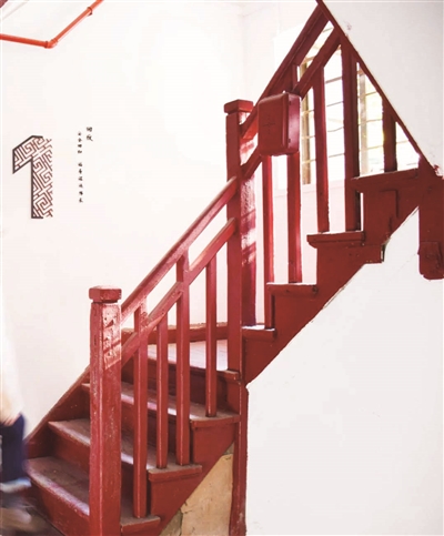 引发关注的“红楼梯”就位于鞍山三村的一栋普通居民楼内。这栋建于上世纪60年代的居民楼共有5层,住着20户人家。拾级而上,可看到回纹、步步锦纹、盘长纹、风车纹、冰裂纹等不同纹路的墙面设计,透露出浓浓的中国风。而这些变化是“四平空间创生行动”第三季的一部分。