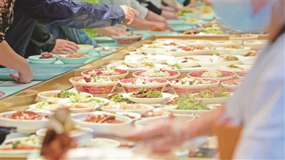 今年4月,长白228街坊焕新归来,随后,“熊猫饭堂”作为其“15分钟社区生活圈”的“重要一点”,在杨浦“一炮而红”。油亮的红烧肉、碧绿的毛豆香干、金灿灿的番茄炒蛋……居民们人手一只托盘,选菜、装盘、付款一气呵成,约三分钟内就能吃上热腾腾的饭菜,吃不完还可打包回家。