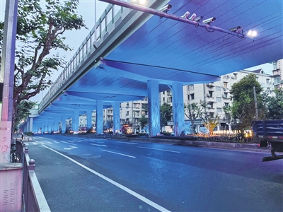 “有一天晚上从这里经过,我女儿说妈妈你看,这蓝色的光好像波浪……”最近,市民程女士惊喜地发现,内环高架的桥下空间成了绚丽夜景的“新成员”,“杨浦好像变得越来越有趣了。”程女士如是说。