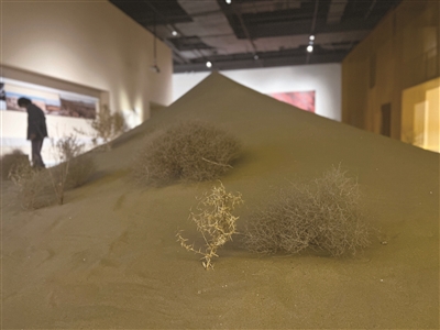 “境象敦煌”展览中,最引人注目的展品莫过于位于“自然”展区的鸣沙香山。艺术家通过在山形基座上覆盖敦煌鸣沙山的山沙,让参观者身临其境,感受鸣沙山上的一草一木。