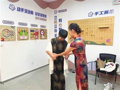 定海路街道和润苑居民陈女士今年68岁,是个热心肠。近来,她和小姐妹们精心打扮,参加了一场怀旧摄影活动。这是定海路街道老年认知障碍支持中心的“开场秀”,而陈女士就是该中心的志愿者。“总体来说,我们现在还算身体健康,社区里有一些患有认知障碍、行动不便的‘老老人’,我们‘小老人’当然要主动帮助,关心关爱他们,这也是我参加活动的动力。”