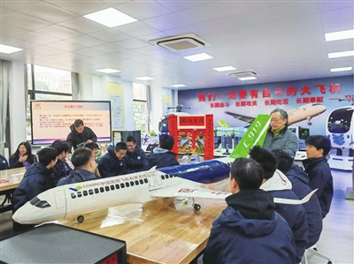 高一学生在科技总辅导员和同济大学导师带领下通过“学习馆”AR-VR模拟飞行场景,配以“学习馆”的飞行器学具,解构大国飞机中所蕴藏的数学、物理、工程学等多学科知识;