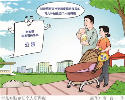 为贯彻落实中共中央办公厅、国务院办公厅印发的《育儿补贴制度实施方案》有关规定,财政部、国家税务总局8月20日对外发布公告称,对按照育儿补贴制度规定发放的育儿补贴免征个人所得税。■新华社发 曹一 作