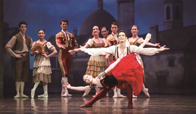 这一版本的《堂·吉诃德》由塞·卡洛斯·马丁内斯编舞,舞剧情节虽简单,但舞蹈语汇丰富,整个舞台可以用“热辣滚烫”来形容。甚至还有难得一见的斗牛舞,身着黑色服饰的斗牛士手中红黄双面的穆莱塔飘逸旋转,与黑红长裙的西班牙女郎共舞,充分展现了热情、奔放、勇敢的性格特征。
