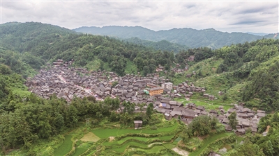 这是2024年7月20日拍摄的贵州省黎平县双江镇黄岗村全景(无人机照片)。