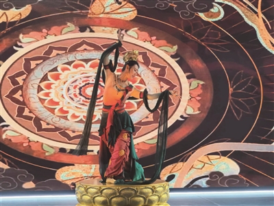 在山西馆门口,一场跨越千年的文化对话与艺术演绎十分吸引眼球。舞蹈《千年微笑》以大同华严寺薄伽教藏殿内的辽代合掌露齿菩萨彩塑为创作核心。作品源于创作者对这尊“辽代艺术瑰宝”的深度震撼——从菩萨合掌的姿态、露齿的浅笑到衣袂的纹理中汲取灵感,通过舞蹈语言将静态彩塑转化为灵动的肢体表达,让千年之前的工匠巧思与审美意趣在当代舞台重生。