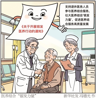 国家卫生健康委、民政部等5个部门11月4日公布《关于开展银发医养行动的通知》,提出支持退休医务人员参与医养结合服务,壮大医养结合“银发力量”,促进医养结合服务高质量发展。■新华社发 冯德光 作