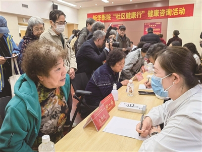 本报讯 社区是医疗卫生服务的“网底”,也是离居民最近的“健康守门人”。最近,以“思政引领促健康,服务居民零距离”为主题的“社区健康行”系列活动在杨浦举行。控江社区卫生服务中心活动现场,来自上海交通大学医学院附属新华医院的全科医学科、中医科、疼痛科、皮肤科、妇科、乳腺外科、消化科等优势学科的专家团队,为居民提供健康咨询服务。