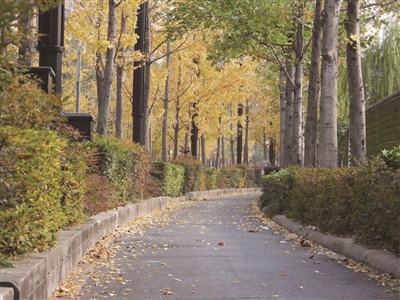 记者在现场看到,朝阳下的国晓路,银杏叶如小扇般铺满人行道,鹅掌楸与其交织成层次丰富的暖调画面,脚踩上去发出细碎的声响。不远处的清波路则更显静谧,栾树的叶子已从绿色转为浅红、橙黄。■记者 王歆瑜
