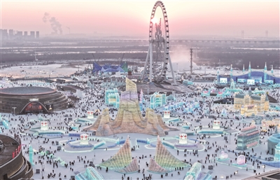 12月17日上午10时,第二十七届哈尔滨冰雪大世界正式开园迎客。园区占地面积达120万平方米,总用冰用雪量突破40万立方米,以历届之最的规模,打造一座冰天雪地的“童话世界”。■新华社记者 王松 摄