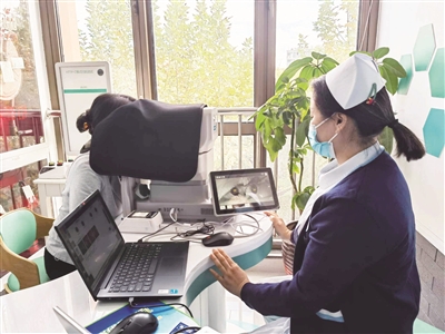 活动现场,居民先通过“健康小EYE”平台完成视觉健康风险自测评估,并体验了VIMC自助视力检查、电脑验光检查及眼底照相检查等项目。记者了解到,全自助筛查设备无需专业人员辅助,居民仅需约5分钟即可完成全部检查项目,20秒内即可得到人工智能辅助诊断报告,筛查结果从以往的1-2周等待缩短至现场立等可取。