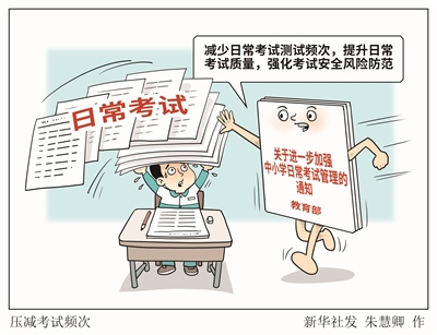 记者12月17日从教育部获悉,《关于进一步加强中小学日常考试管理的通知》于近日印发,要求减少日常考试测试频次,提升日常考试质量,强化考试安全风险防范,减轻学生过重学业负担,促进学生全面健康发展。■新华社发 朱慧卿 作