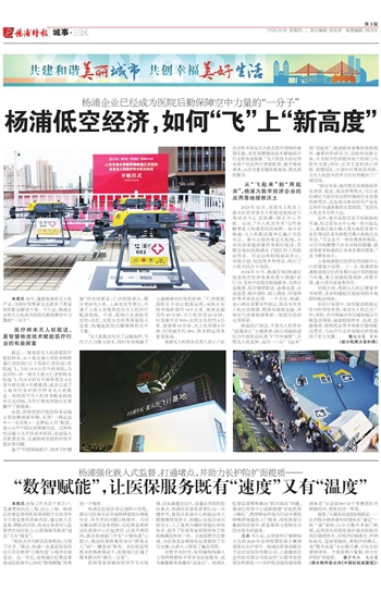 本报讯 如今,蓬勃发展的无人机产业,为即时零售新业态提供了更高效的配送解决方案。不久前,杨浦企业的无人机成为医院后勤保障空中力量的“一分子”。