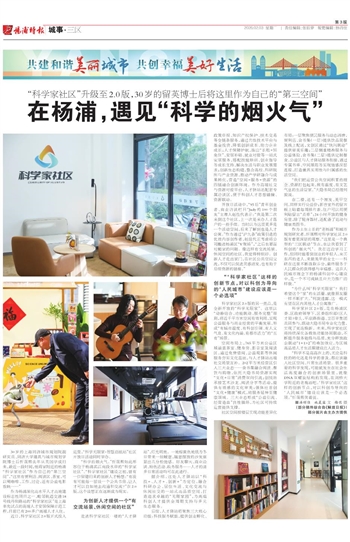 “科学的烟火气。”忻晟熙如此形容位于杨浦滨江南段水岸的“科学家社区”。“科学家社区”建设之初,曾有一位留德归来的创新人才畅想:“有没有可能每一层设一个公共书房,让人才可以自如地去沟通和交流?”在2.0版,这个设想正在逐渐成为现实。